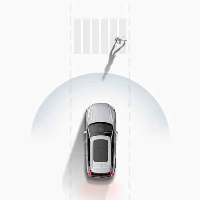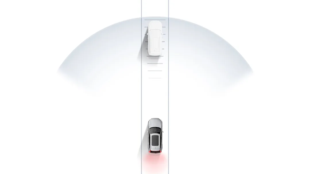 Hệ thống cảnh báo cắt ngang Công nghệ hỗ trợ lái an toàn của Volvo giúp đỡ khi thực hiện rẽ cắt ngang dòng giao thông đang di chuyển đến gần, bằng cách tự động phanh nếu có nguy cơ gặp va chạm. |