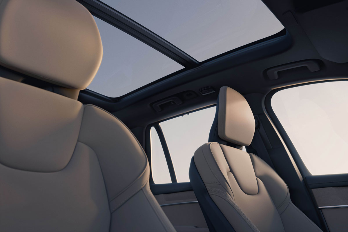 Volvo XC90 2026 Facelift với không gian mở, nhiều ánh sáng nhờ cửa sổ lớn và cửa sổ trời toàn cảnh |